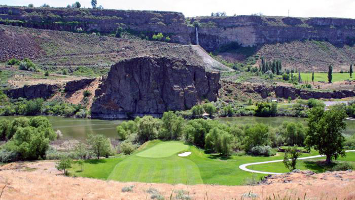 Blue Lakes is a scenic and challenging 18-holes and 6,474 yards of championship golf that plays to a par of 72. The nationally recognized par-3 6th hole has an elevated tee situated on a cliff 200 ft. above the winding Snake River.