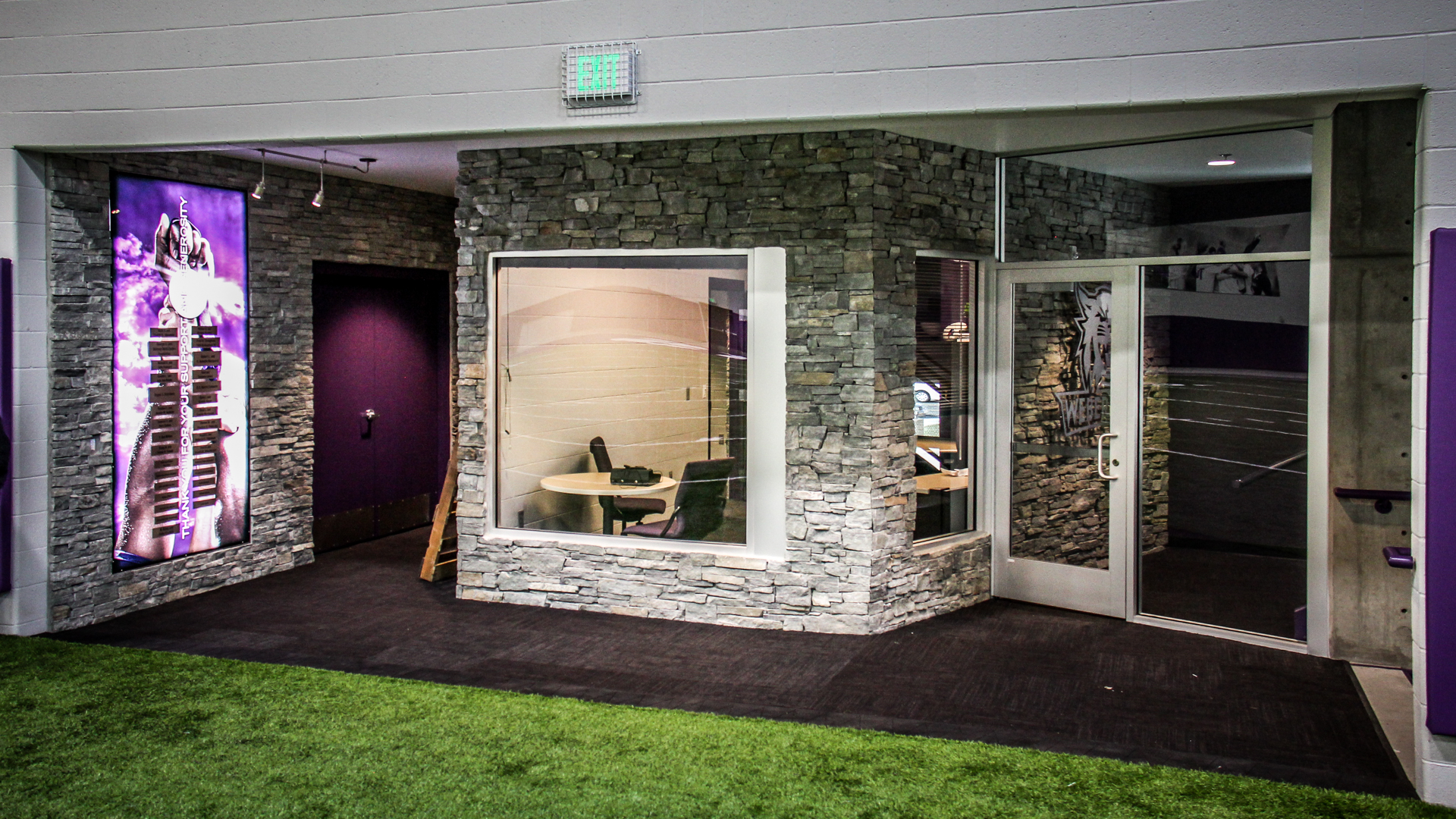 On the upper floor of the Field House is a 60-yard indoor practice field, known as the George S. Eccles Field. The synthetic turf field is marked to accommodate football, soccer and softball. In addition, the facility also includes a state-of-the-art strength and conditioning complex, which accommodates athletes from multiple WSU sports. The complex also includes an additional exercise room overlooking the field.