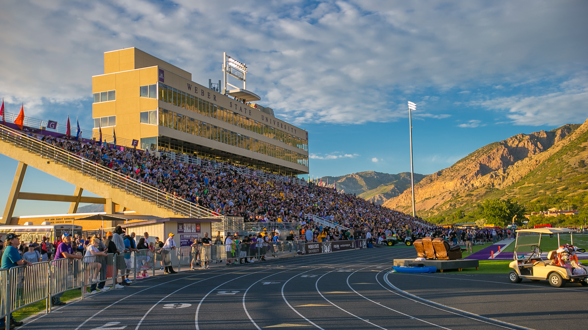 Views of the Wasatch Mountains to the East and the city of Ogden and the Great Salt Lake to the West make Stewart Stadium one of the best settings in all of college athletics