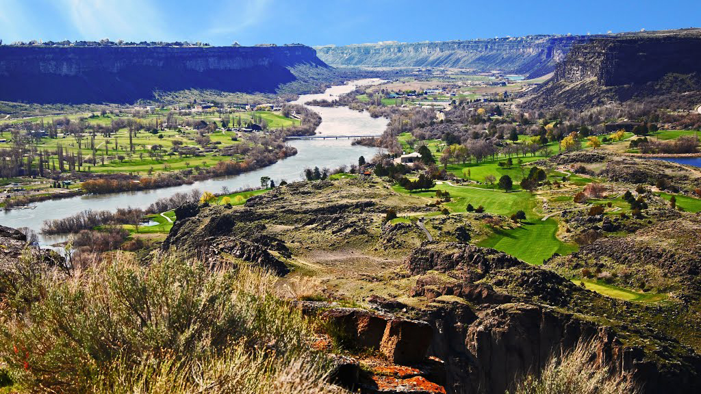 Blue Lakes is a scenic and challenging 18-holes and 6,474 yards of championship golf that plays to a par of 72. The nationally recognized par-3 6th hole has an elevated tee situated on a cliff 200 ft. above the winding Snake River.